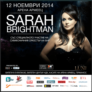 Para su concierto en Sofía el 12 de noviembre (en estos momentos en que publico esta entrada se está realizando el concierto), Sarah Brightman llegó con un equipo de 25 personas. Se presentará, junto a la Orquesta Sinfónica de la Radio Nacional de Bulgaria, en la "Arena Armeec", en donde tendrá más de 70 músicos en escena.